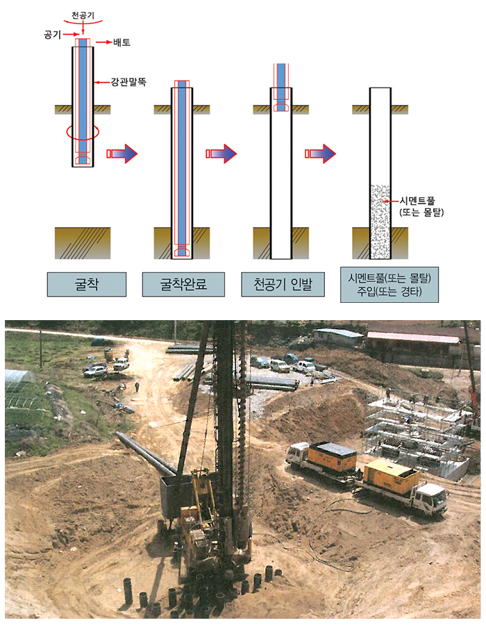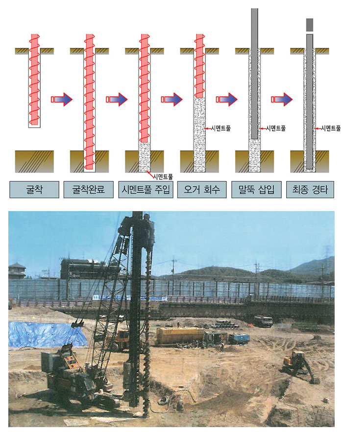 - 큰 설계지지력 적용으로 말뚝 본 수를 감소시킬 수 있어, 공사비 절감과 공기단축이 가능하여 경제적임