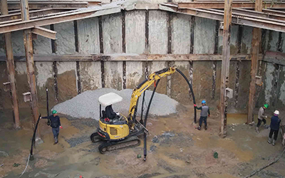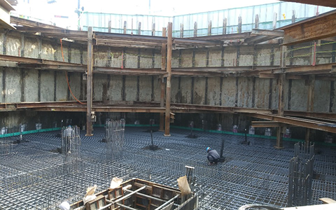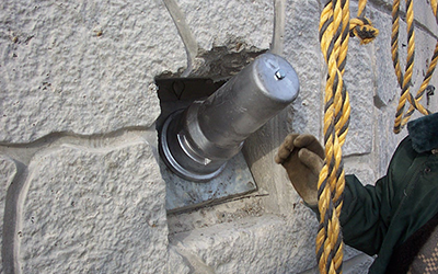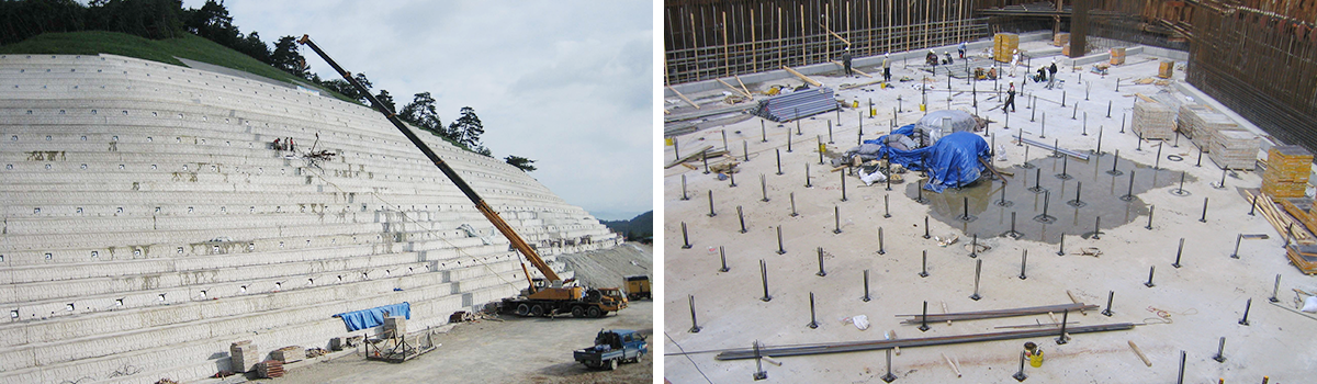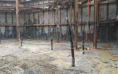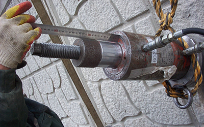 구조물을 높은 긴장력을 도입한 고강도의 강재로 연결하여 안정한 지반에 정착하는 공법
