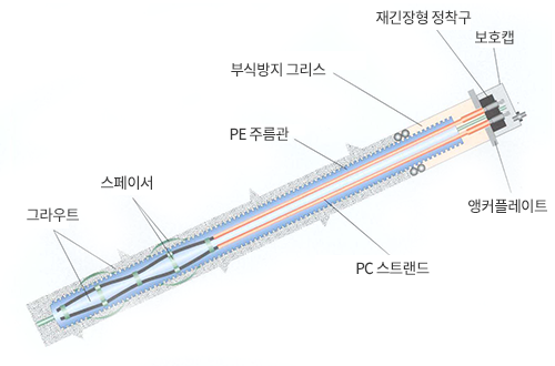 • 고강도 강봉을 지상에서 선그라우팅(Pregrouting)하여 완벽한 부식방지 가능