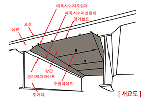 균열로 인한 강성의 저하 및 진동 장애, 철근 배근량이 부족한 부분에 사용할 수 있어 널리 사용되고 있는 공법으로, 슬래브, 보, 기둥 등 구조물의 내력을 증강하기 위해 철판을 부착하고 에폭시를 주입하여 기존 구조물과 압착하는 공법이다. 또한 내진보강에도 탁월한 효과를 발휘하는 적용범위 폭넓은 공법이다.