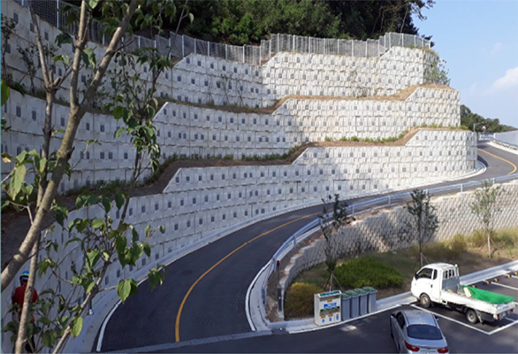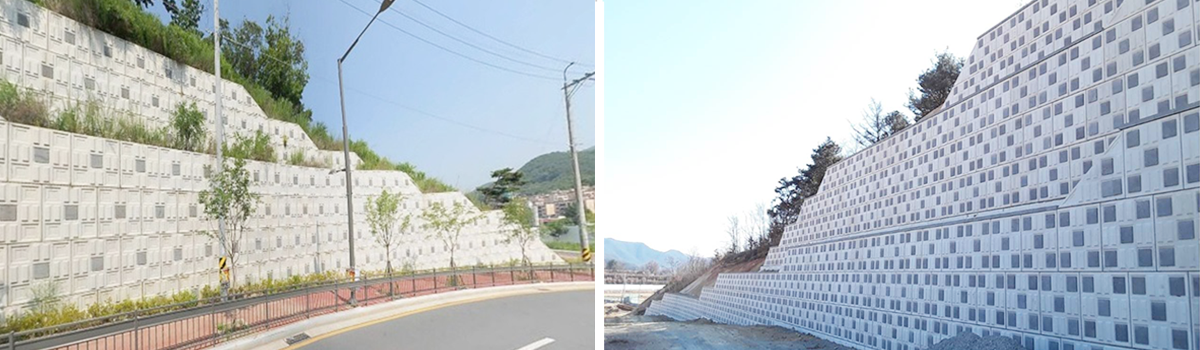 - 계단식 시공으로 소단부에 조경식재가 가능하여 환경친화적임