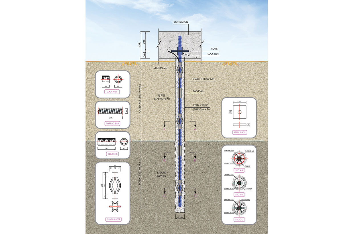 천공구경은 최소화하였고 다양한 지반조건에서도 사용이 가능한 공법이다.