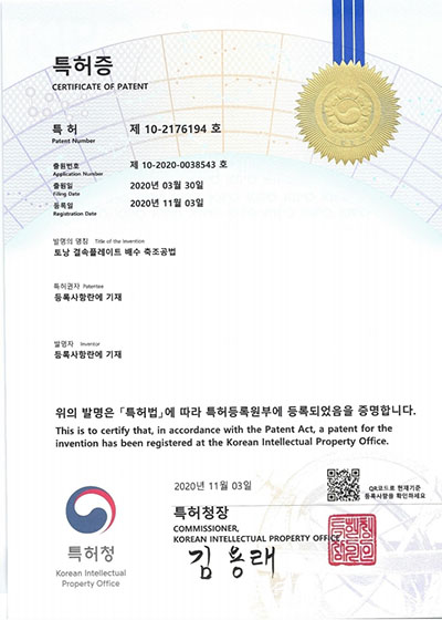특허증(식생토낭 배수축조공법)