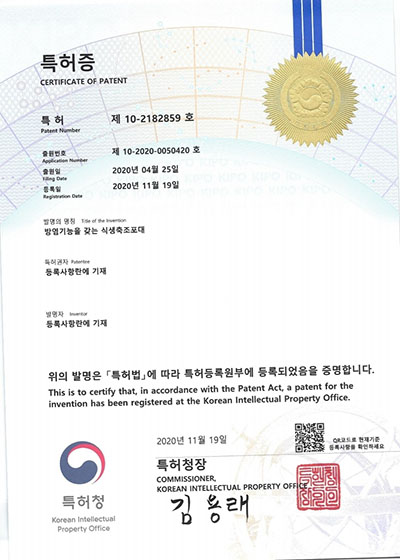 특허증(방염기능 갖는 식생축조포대)