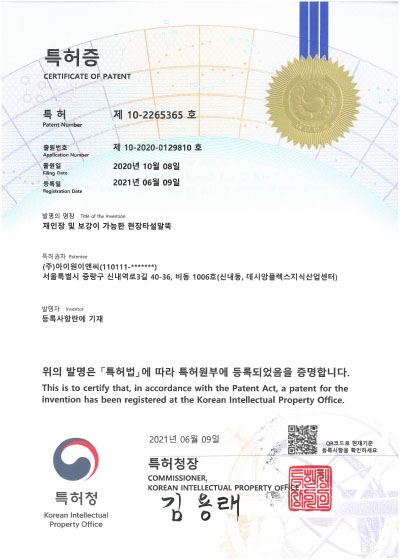 특허증(재인장보강현장타설말뚝)