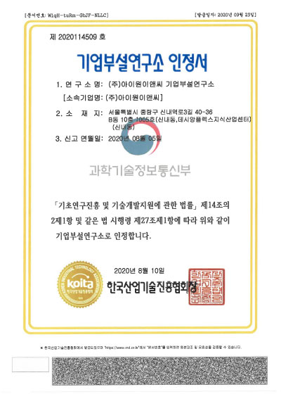 기업부설연구소 인정서