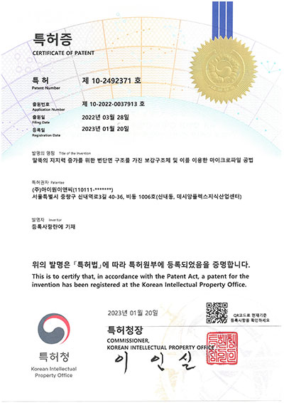 특허증(선단지지력보강파일)